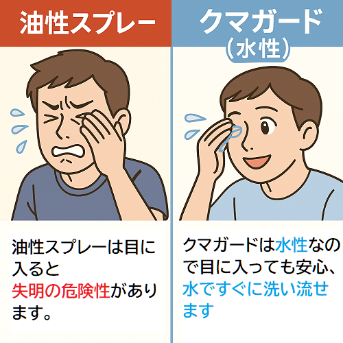 クマガードは水性なので、万が一目に入ったとしても水で洗い流すことが来ます。
